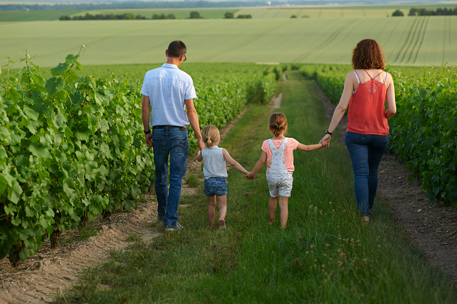 Famille en champagne maison vignoble